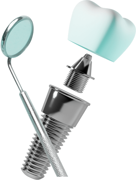 - اباتمنت: قطعهای از تیتانیوم که به ایمپلنت پیچ میشود و به عنوان پایهای برای روکش عمل میکند.